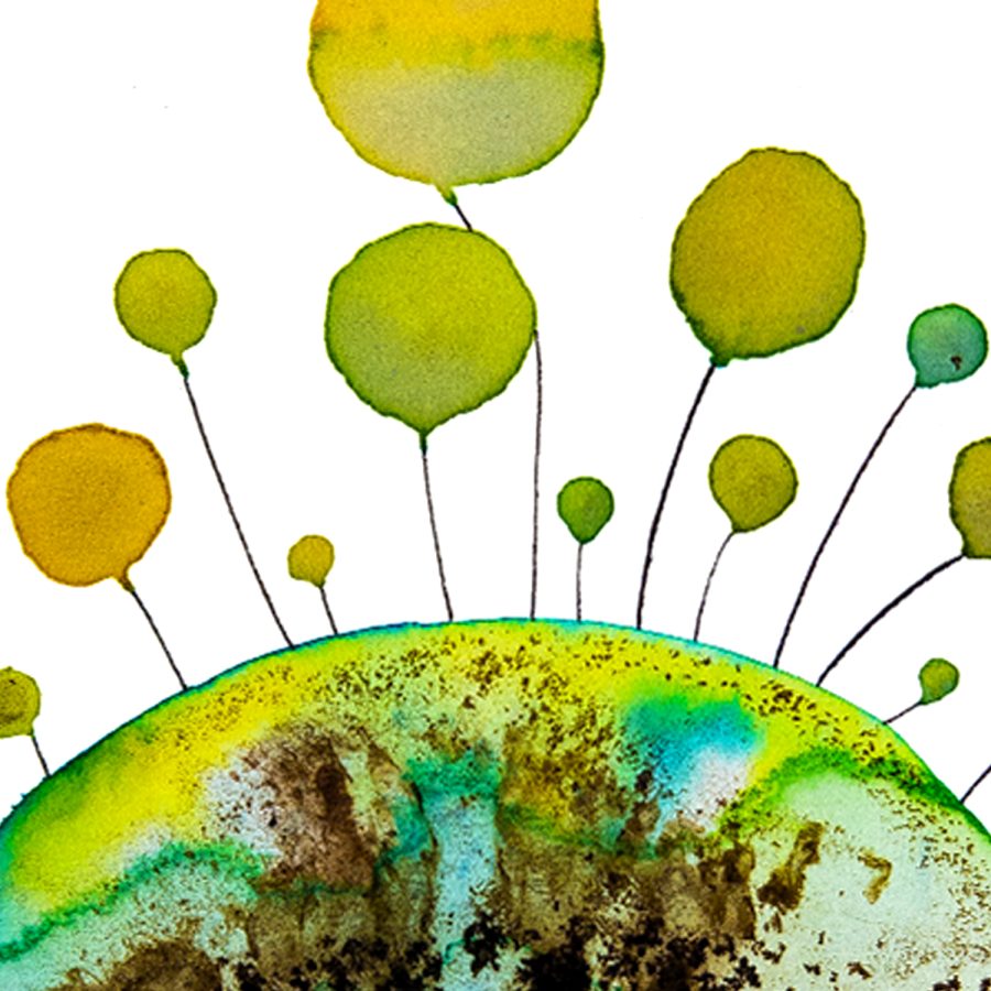 En este mundo corazón crece un árbol lleno de vida y bien arraigado. El color violeta simboliza la transcendencia. Cuando nuestro corazón está ordenado podemos albergar la vida y ofrecer crecimiento y belleza a nuestro entorno. El árbol también es un elemento que suelo utilizar como símbolo de familia, de fuerza, de arraigo, pero sobre todo es un elemento natural que marca los ciclos de la vida.