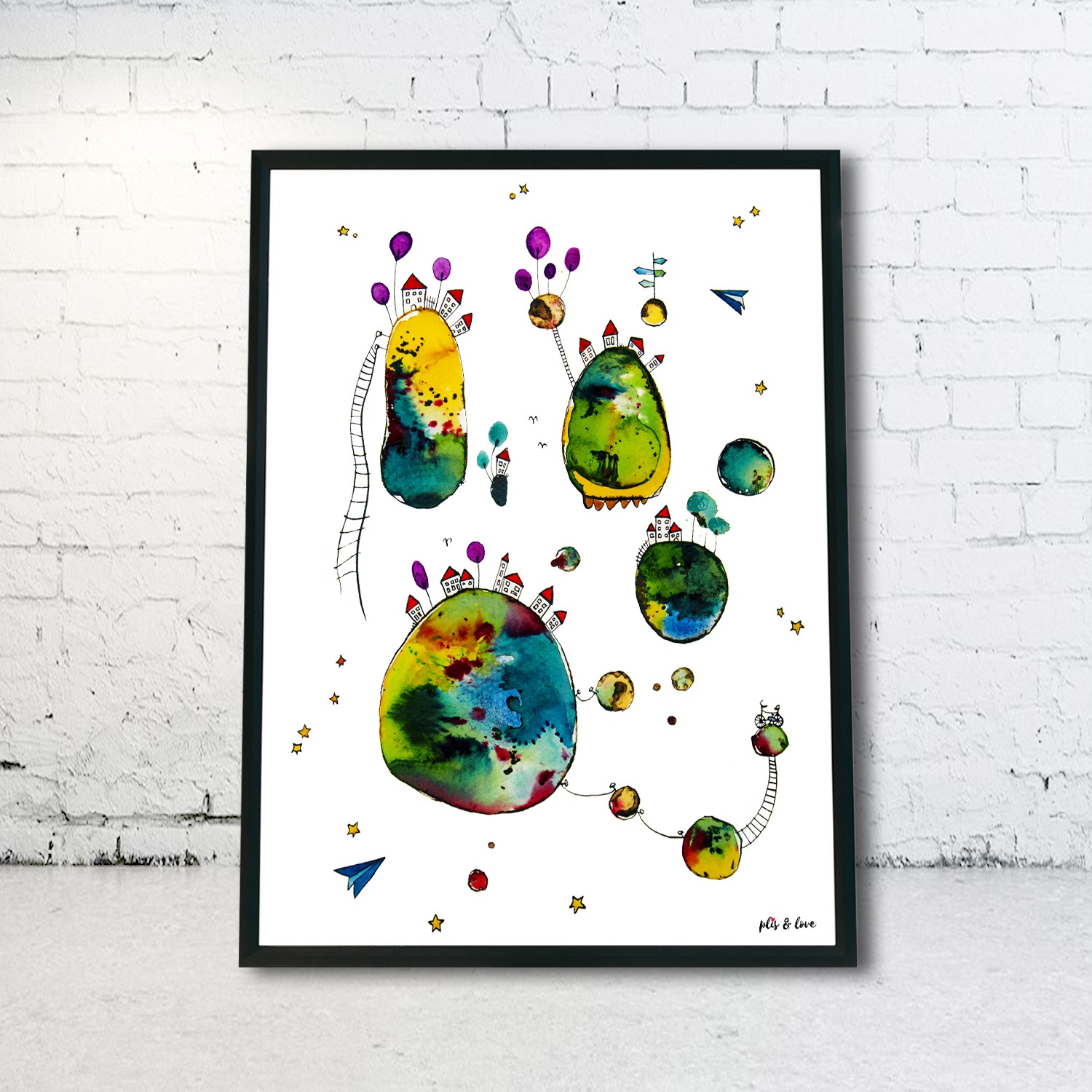 Son esos espacios que habitamos. El viaje a veces es divertido, aventurero, loco, rápido, lleno de juego, magia y encuentros, lugares…. Esta obra resuena con esas personitas viajeras, dinámicas, ligeras y sobre todo con una imaginación espacial y sin límites. Me hace recordar mucho a ese niño que nos habita, el que sigue jugando y haciendo aviones de papel. Espero que te guste y te inspire tanto como a mi.